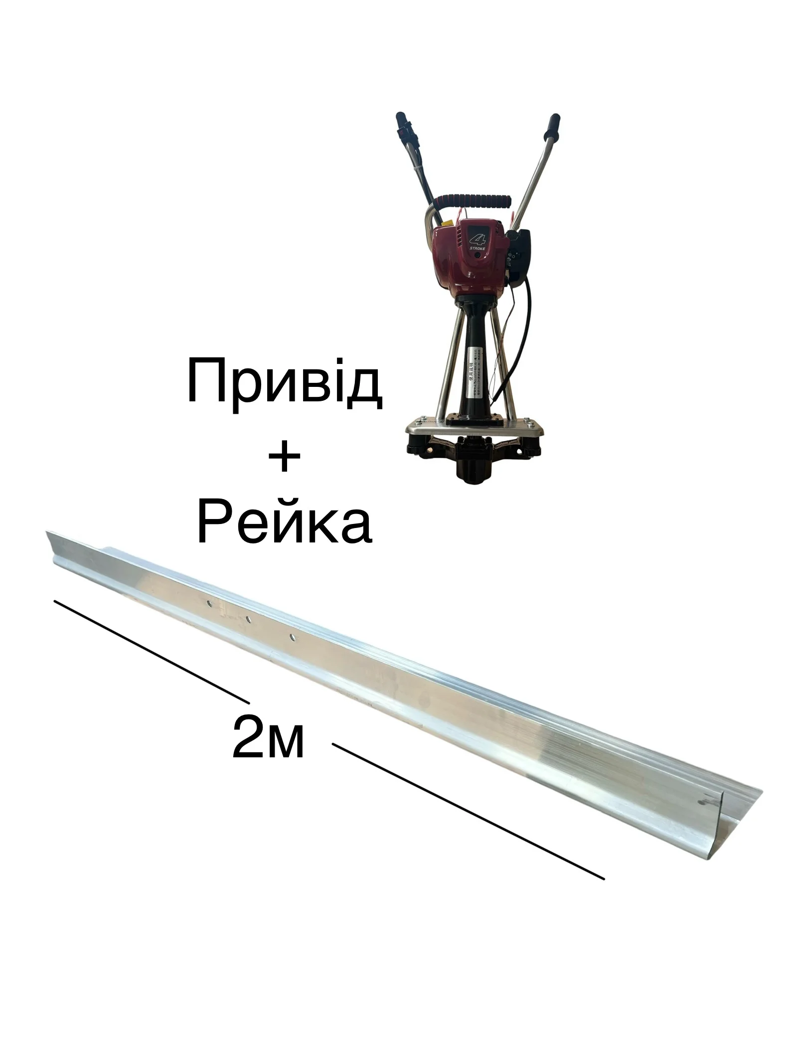 Виброрейка Kvark KS-2 комплектуется четырёхтактным бензиновым двигателем мощностью 1.9 л.с. (аналог Honda GX35). Также в комплект входит рейка 2м.
